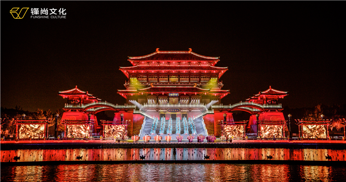 In the beautiful scenery of Tang Paradise Garden, with Ziyun Palace as the backdrop, the front square and the Furong Lake are decorated as the performance area. We combine modern sound, light, digital technology with history, folk customs and culture to show the ancient sleepless Chang’an city .
